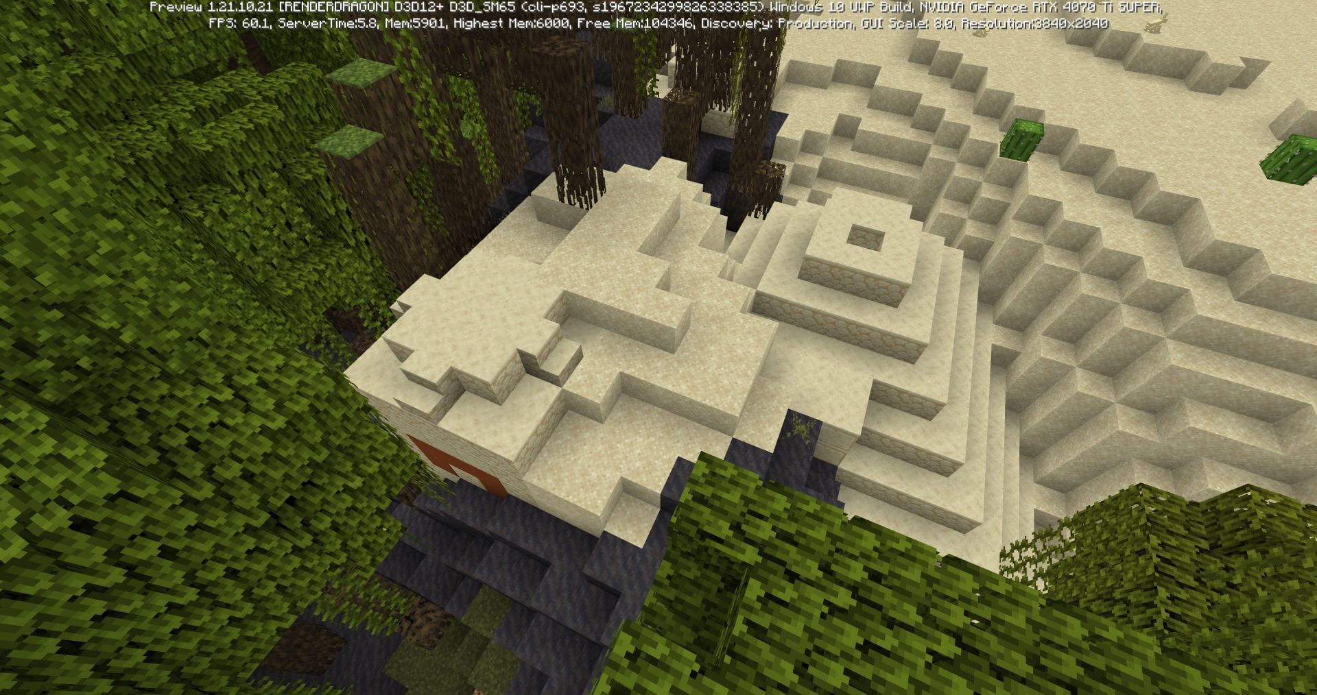 To the north, players will find a desert village with a desert temple and a trial chamber, a trio of structures with amazing loot. To the west, players will find a jungle filled with jungle temples and trial chambers. Past this jungle is a dark oak forest, containing an elusive Minecraft woodland mansion.