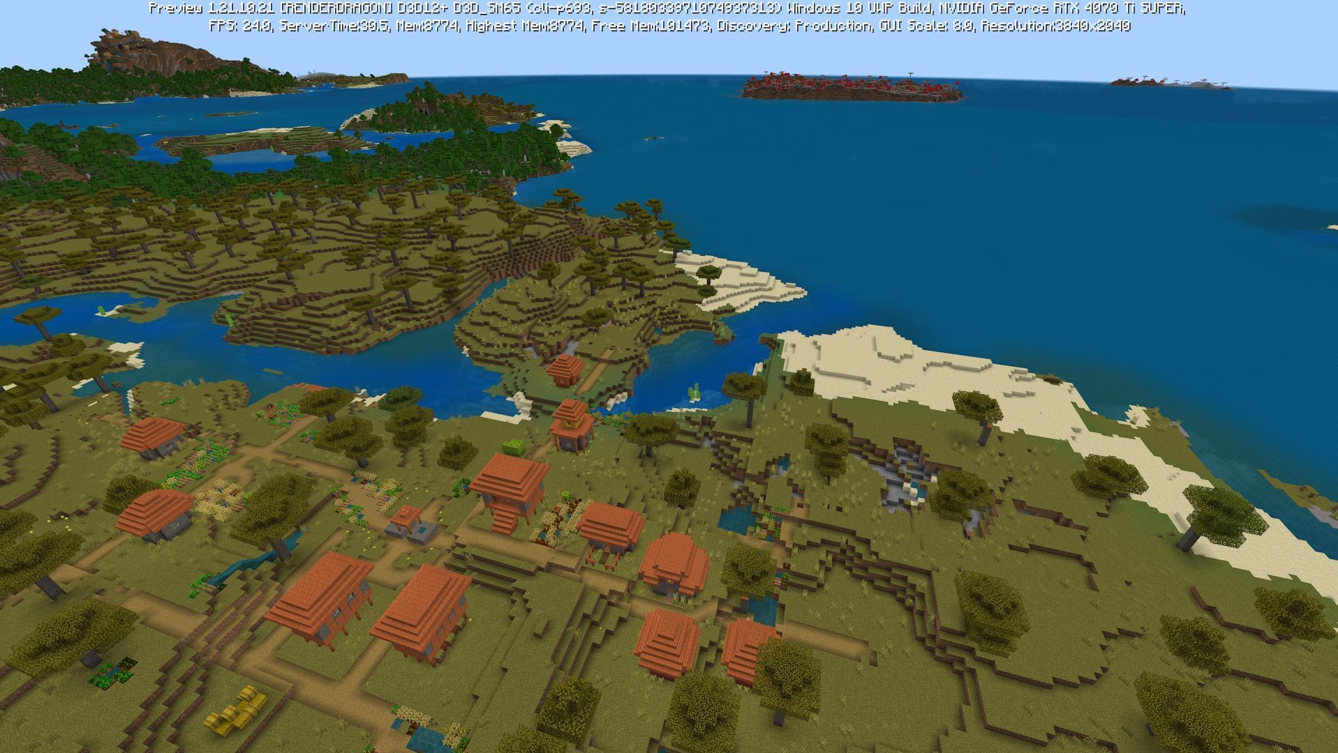 This seed places players on a small beach. To the north is an ocean that contains several ocean monuments, useful for making Minecraft guardian farms. To the east, players will find a woodland mansion across a small cove. There is also a witch hut with a trial chamber under it in this direction.