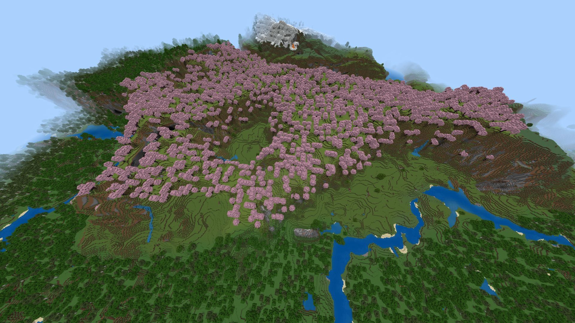 Cherry blossom groves might not be new in the 1.21 update, but they're quite pleasant and make for solid spawn areas in a world seed.
