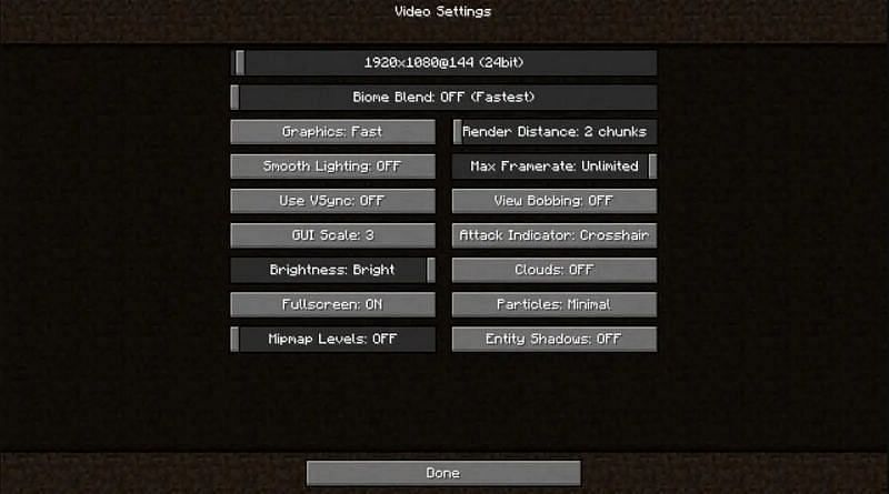 Minecraft players can turn particles to minimal as well, and smooth lighting can be turned off or set to minimum. As far as the graphics settings are concerned, players should set them to something less than fancy for an optimal frame rate.