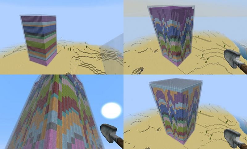 In the image above, a player used world editing to change the sand in a desert biome to different colored concrete powder, creating an amazing effect.