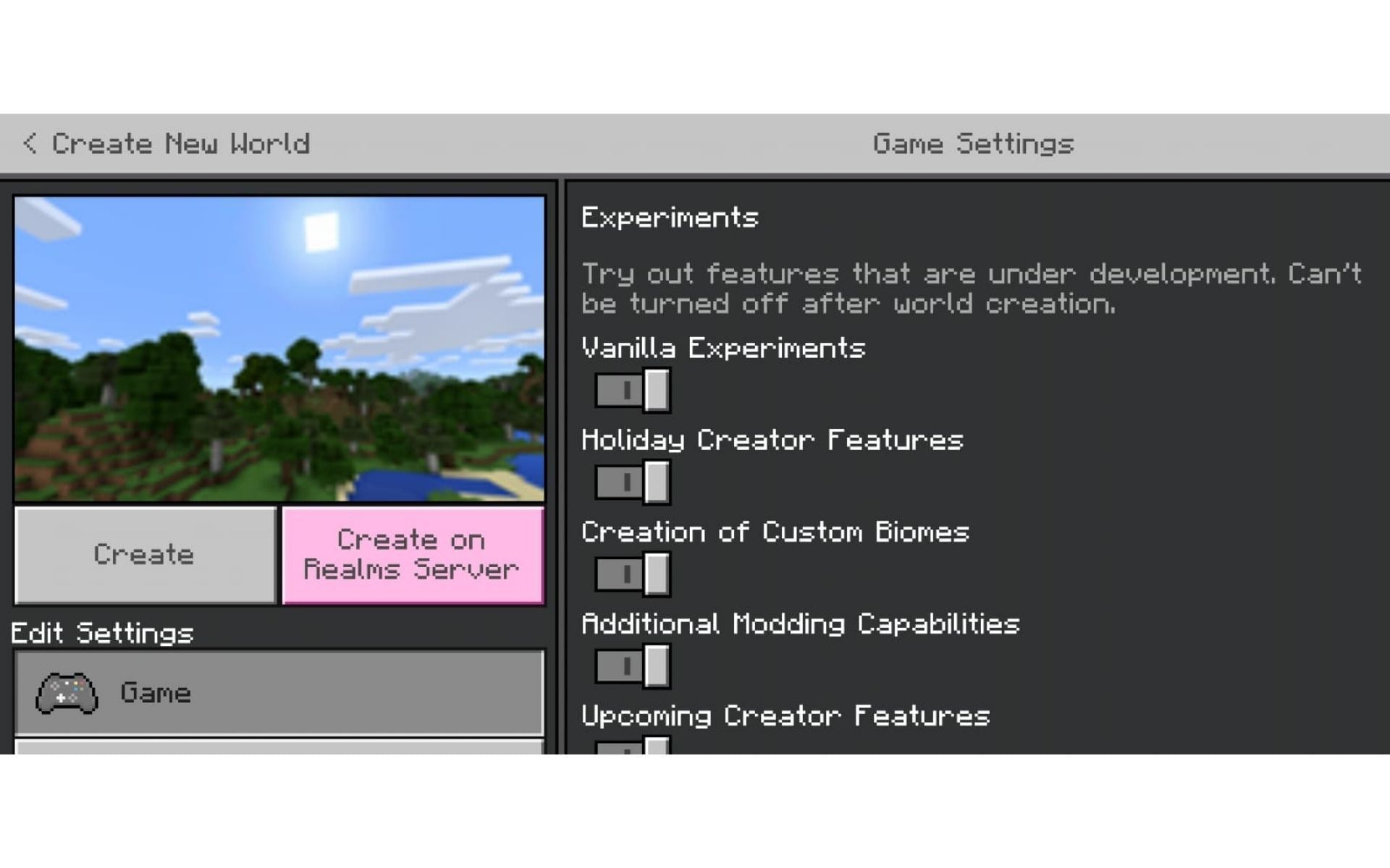 2) Under the Game section, enable all the Experimental Settings. Scroll down to the Add-Ons section in the panel to the left.