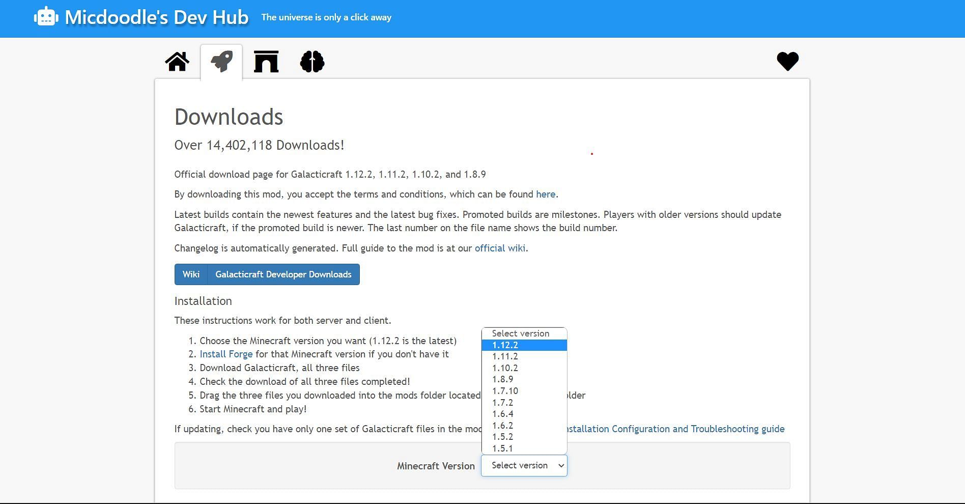 Secondly, players need to download the MicdoodleCore, which allows all the Micdoodle8 mods to work, including Galacticraft. MicdoodleCore can be downloaded from here.