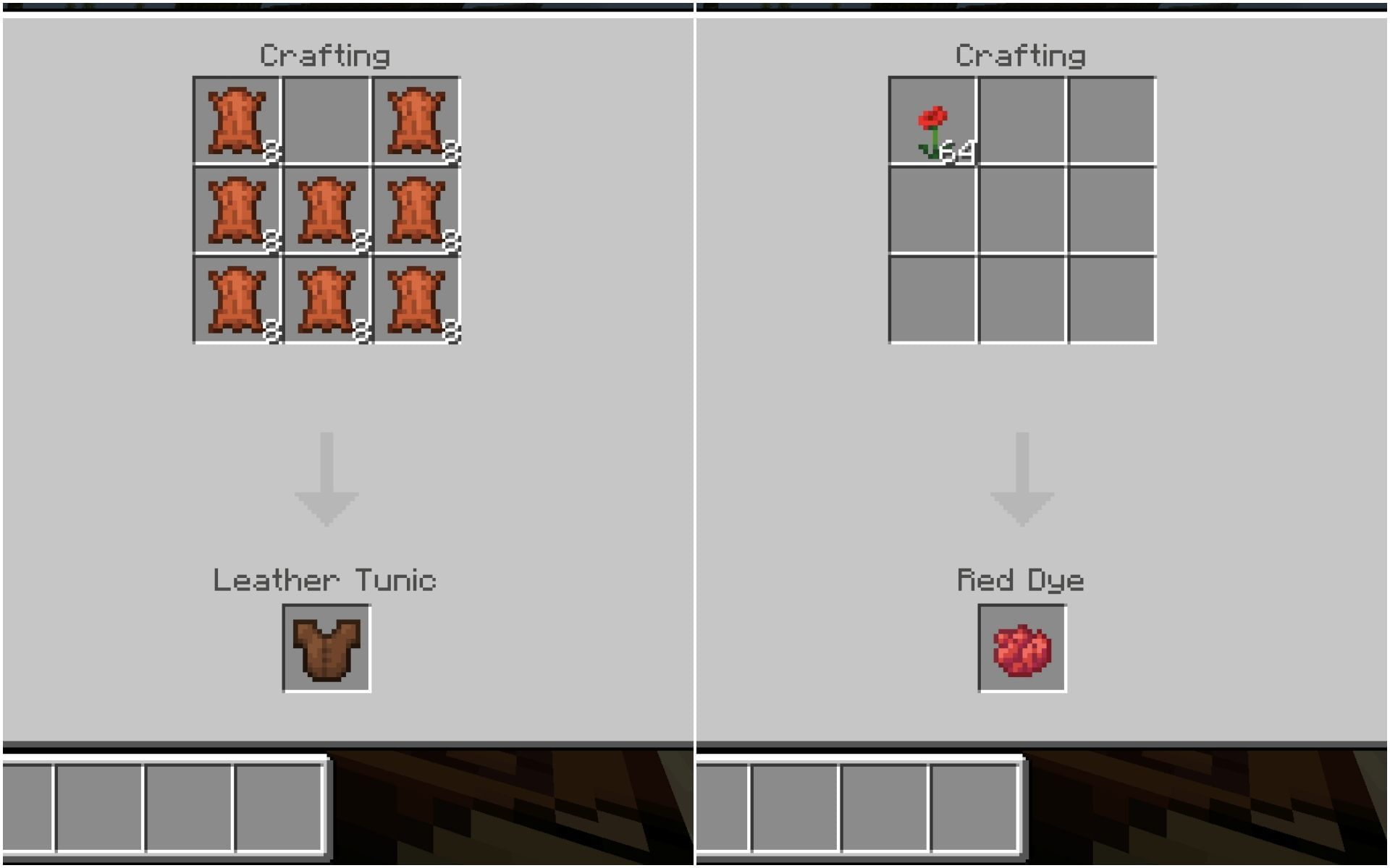 Leather is an item that can primarily be obtained from cows and horses. If players have sufficient items, they can craft a full set of leather armor, and if players are not a fan of its brown color, they can color it with the help of different dyes present in the game. Dye can be extracted from all sorts of items and used to color items in the game.
