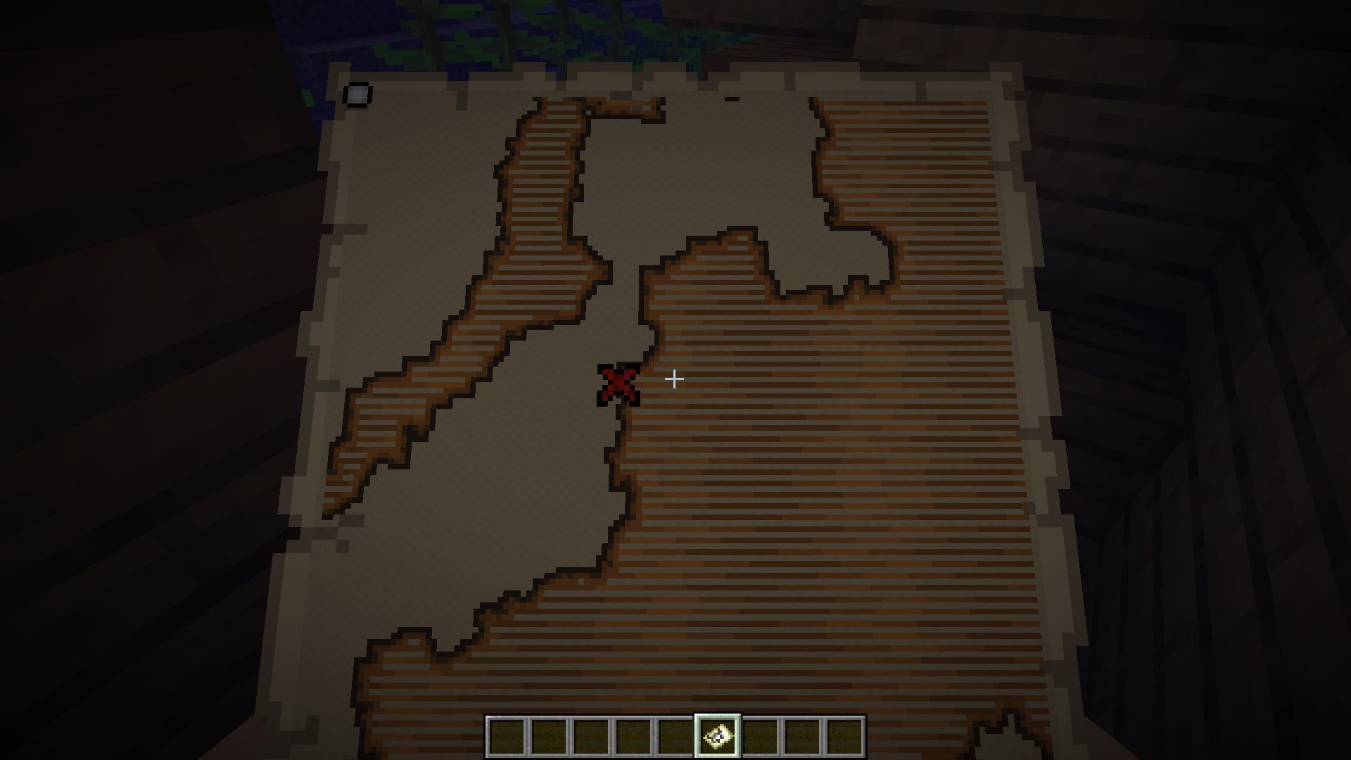 When the player is holding the map, the top part will always denote North. This way, players will be able to decipher their location and the direction they need to head to reach the cross. Players can also press F3 for the debug screen to see which way they are facing, or simply gauge the direction by looking at the sun's movement.