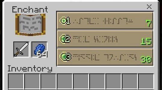 When opening the enchanting table, a menu with a list of three different enchantments will appear. To the left of the menu, players will see a book icon and two input slots under it.
