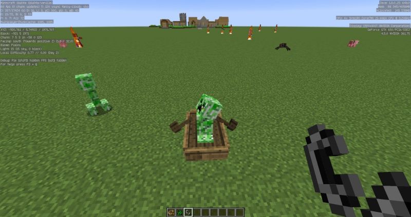 Trap the creeper and skeleton in boats, making them immobile. This allows the player to guide the skeleton's shots without the skeleton moving.