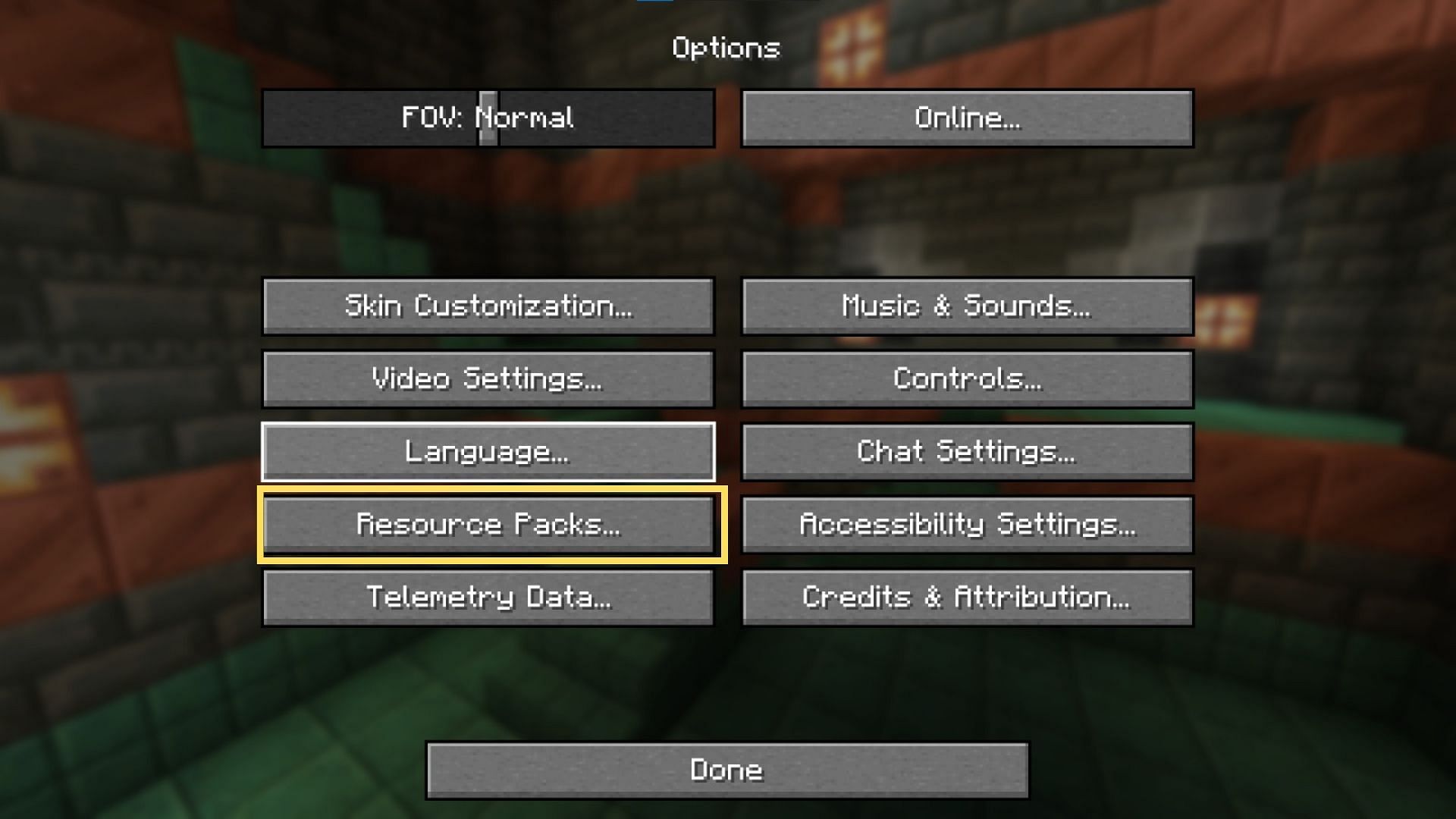 - Launch the game and from the title screen, click on the “Options” button, and select the “Resource Pack” option.