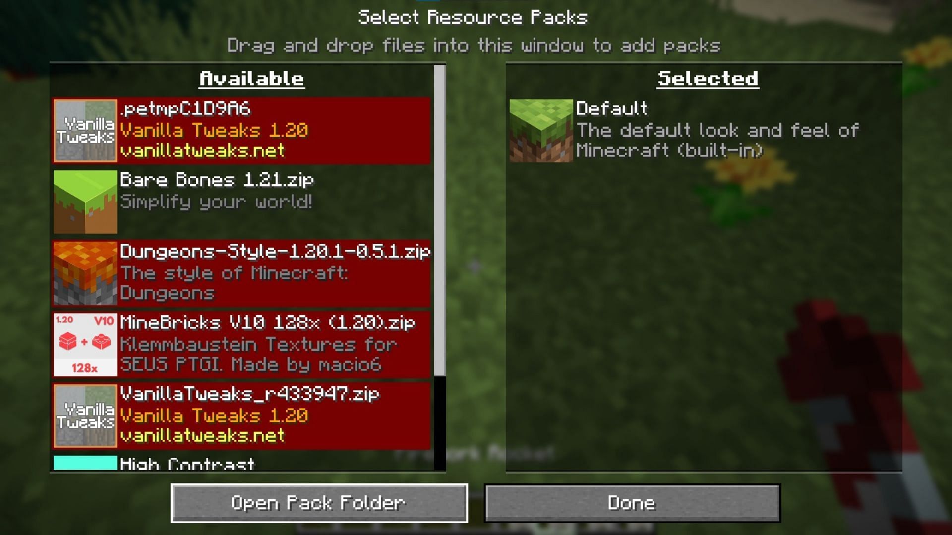 - You will see a list of all the active resource packs. On the bottom-left, click on “Open Pack Folder.”