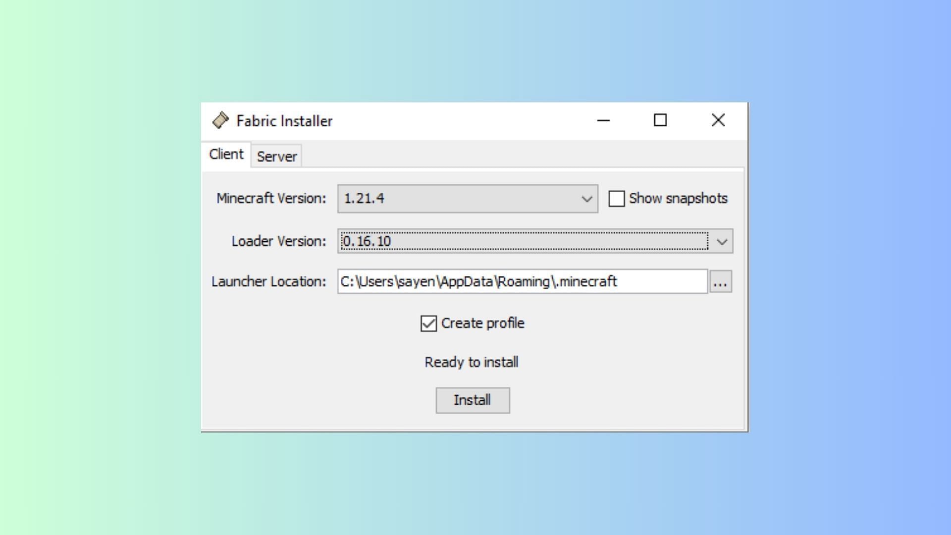 - Make sure to select 1.21.4 as the Minecraft Version. Keep the loader version as default.