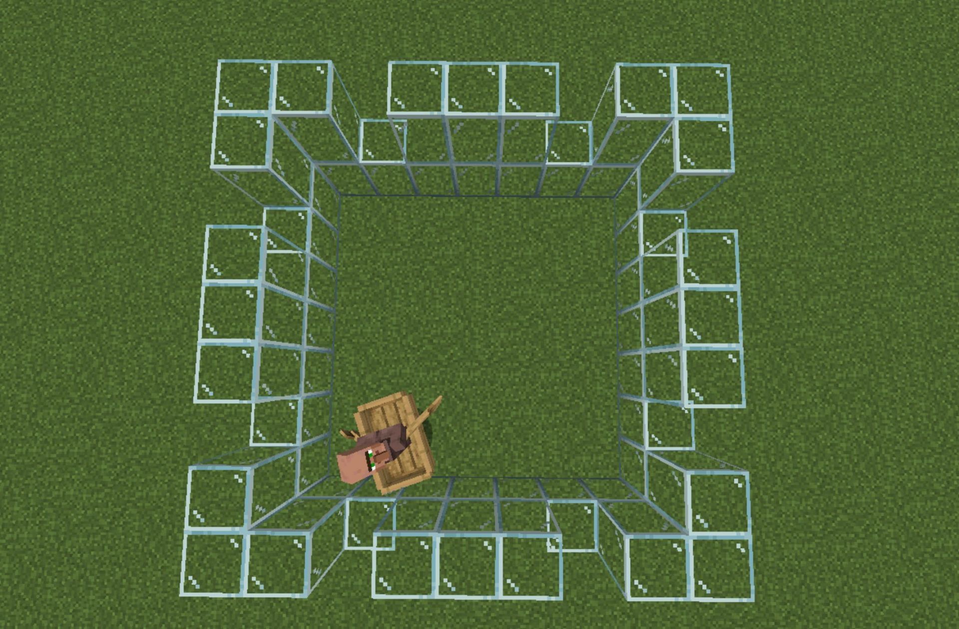 Using glass blocks, Minecraft players can construct a perimeter wall, two blocks high, around the desired farmland. Leave a few blocks on the top of the wall open.