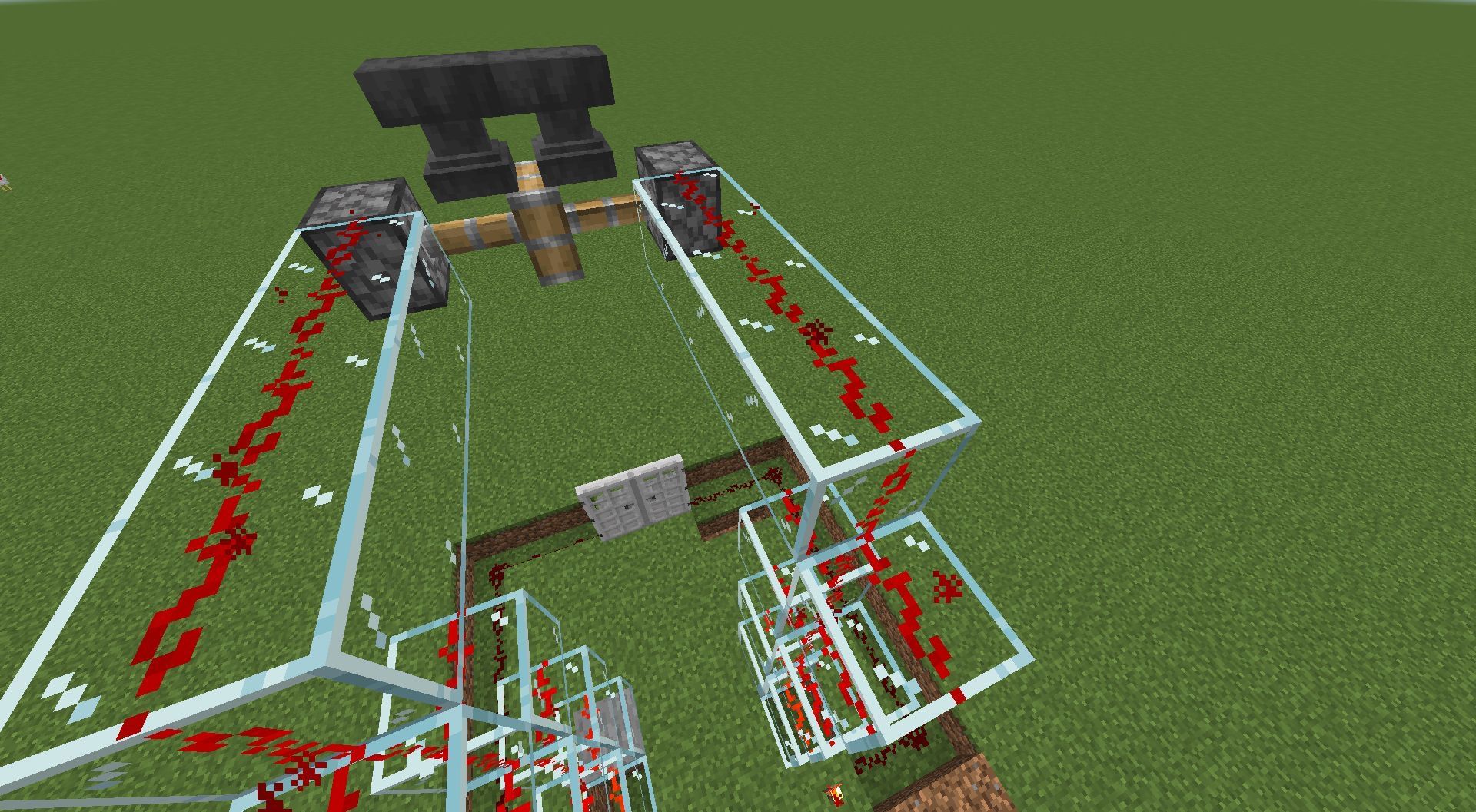 Players must remember to make the redstone glass tower high enough so that the impact from the anvil is fatal enough.