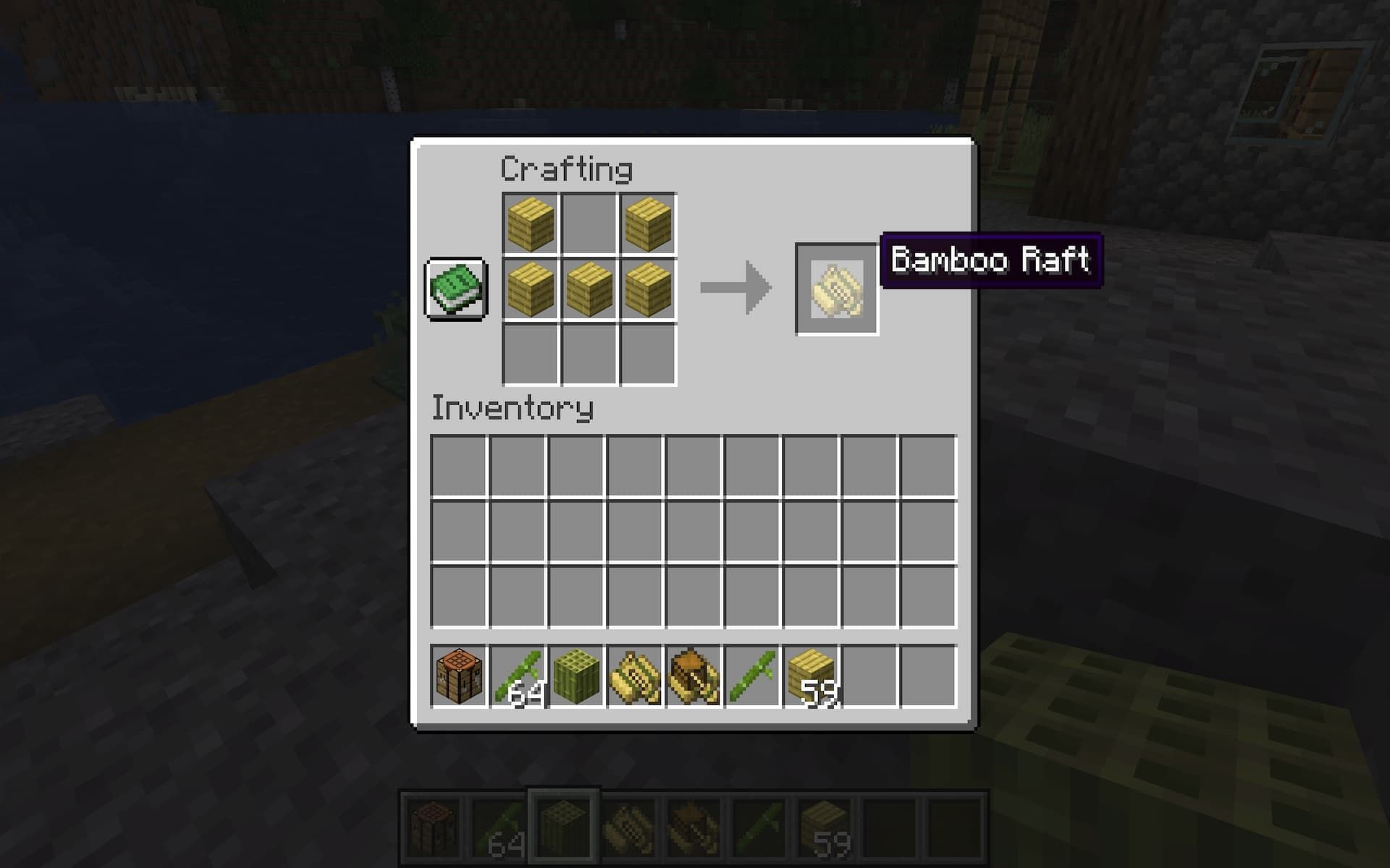 Once you have your bamboo planks, you're ready to create your raft. To do this, simply place five bamboo planks on the crafting table. This will create a raft that can then be moved to your inventory. The raft looks different from a regular boat, but functions the same way, allowing you to travel across water.