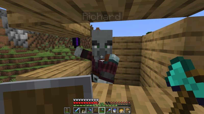 Ideally, players will want to find a regular pillager who is armed with a crossbow. Once found, they should do their best to lure said pillager away from his buddies.