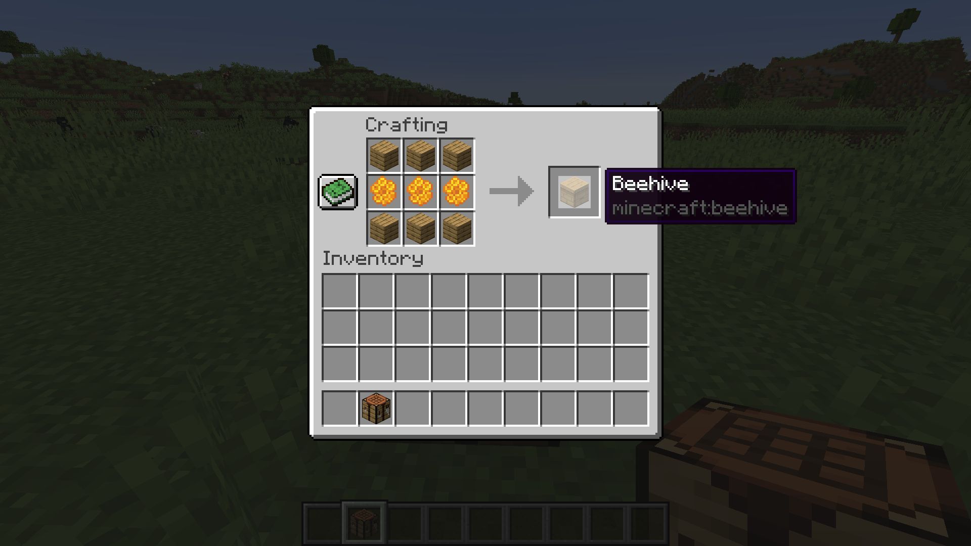This way, players can create a bee nest where bees will hover over flowers and take the nectar back to the beehive block to make honey and honeycomb.