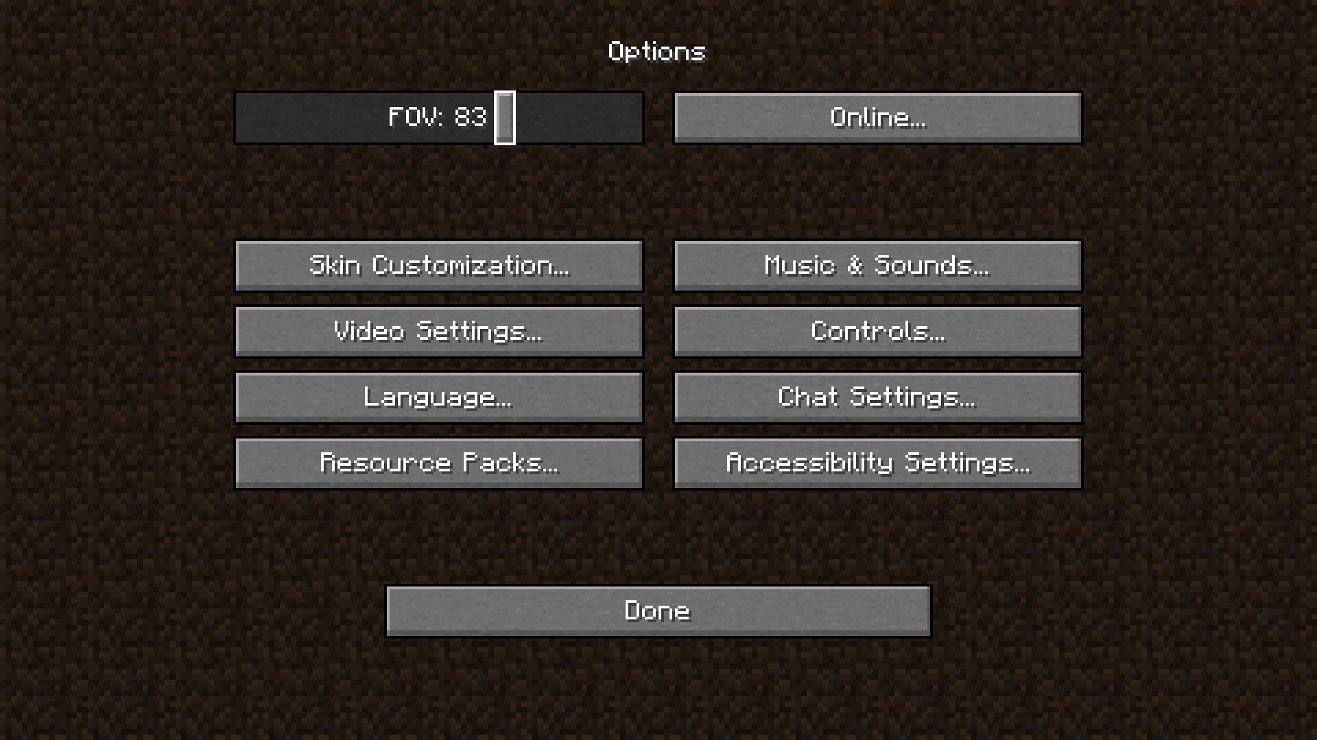 In Minecraft, one of the simplest ways to slightly zoom in is to reduce the general FOV camera. In the pause menu, players will notice an FOV slider through which they can control how wide or zoomed-in they want their vision to be. Gamers usually play the game at 50 or even 80 FOV; however, they can set it to 30 to have a better view of distant places.