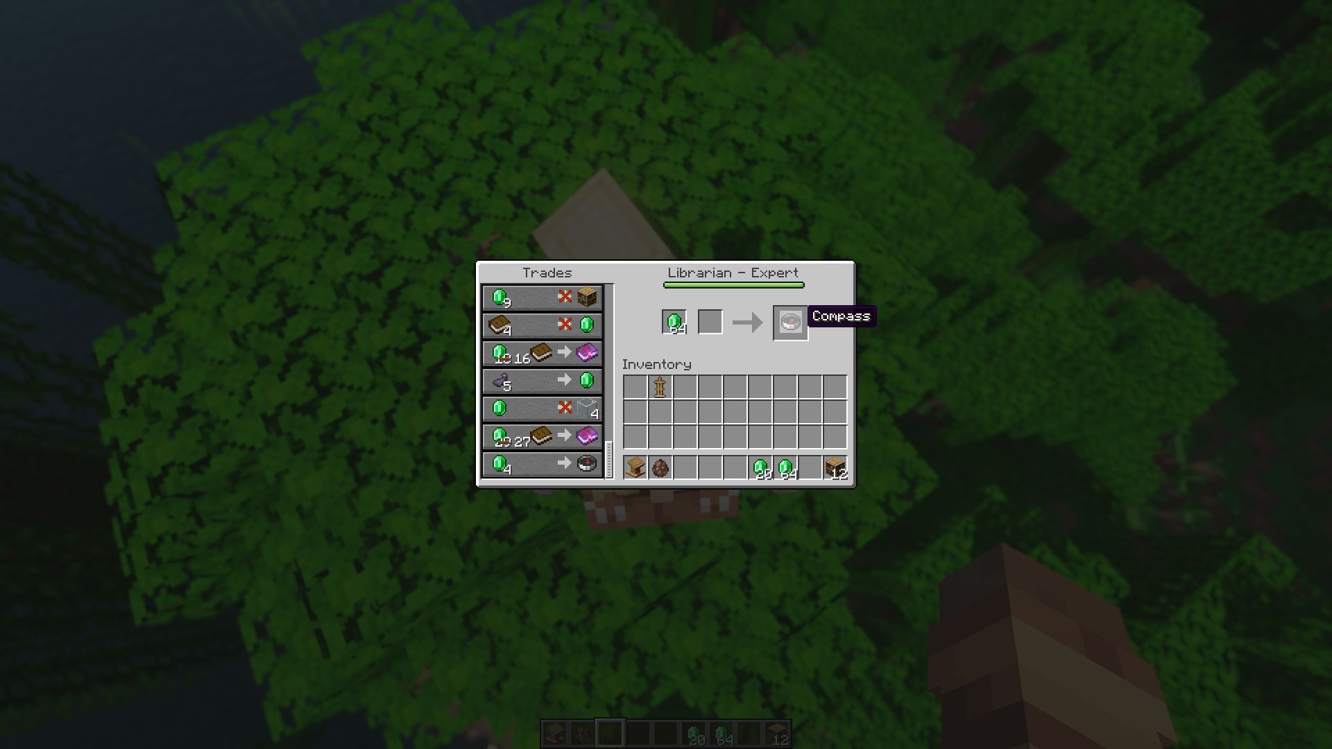 In the Bedrock Edition of the game, the same expert-level librarian villagers will also sell a compass for four emeralds; however, the chance of them having this trade is lower, at only 33.3%.