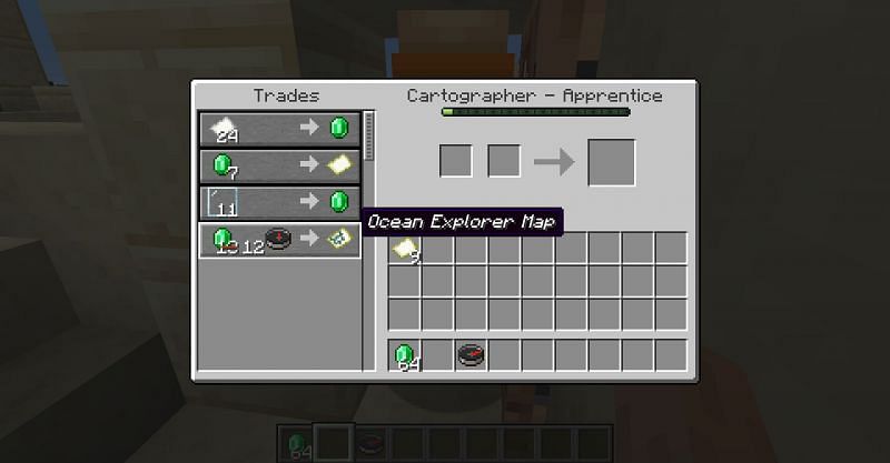 Minecraft players can then buy an ocean explore map from apprentice-level cartographer villagers for 13 emeralds and one compass. The other option is buying a woodland explorer map from a journeyman-level cartographer villager for 14 emeralds and one compass.