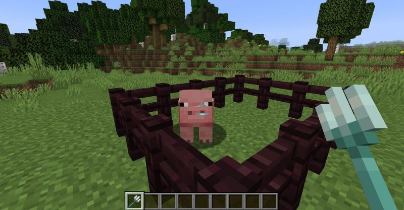 A player can find a pig or other neutral mob in the open world, and then trap it inside some fence posts. The Minecraft player would then be able to get within inches of the target, which would make missing the attack near impossible.