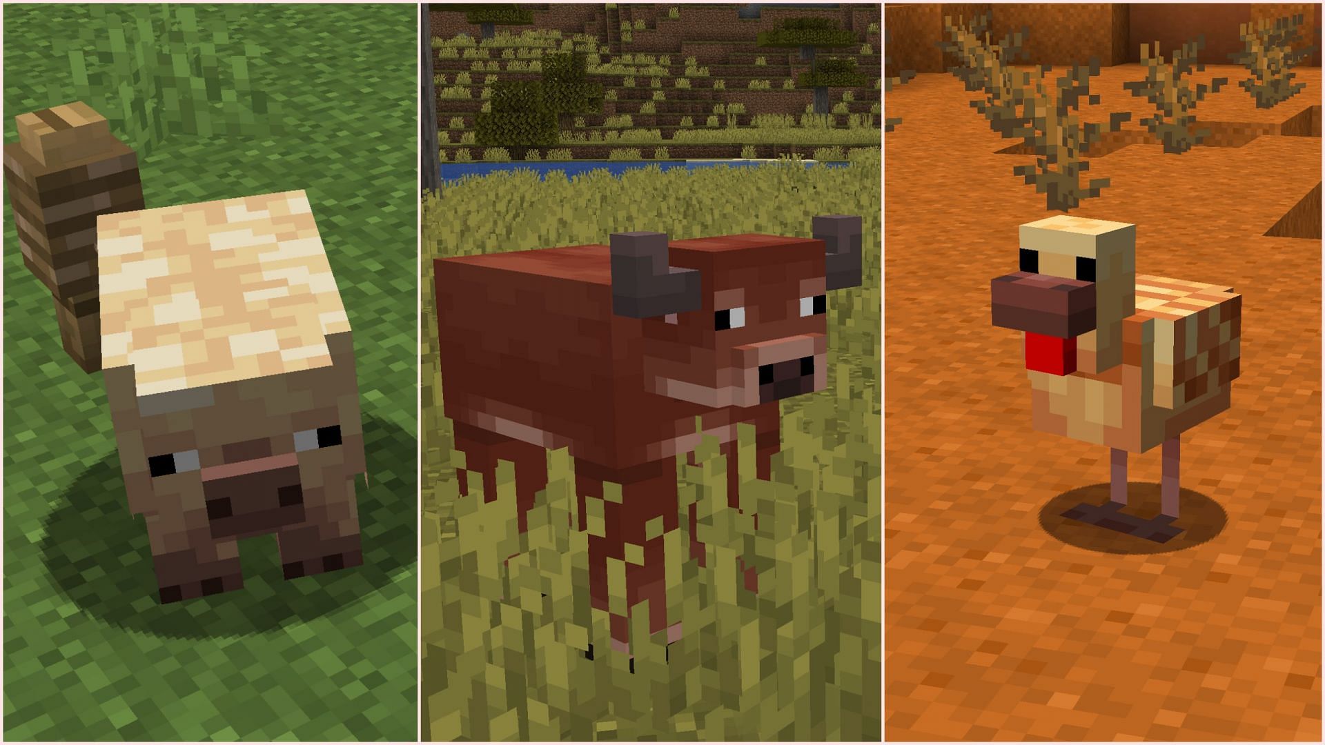 As of now, Mojang has released a total of six new mob variants, two each for cows, chickens, and pigs. They are conveniently labeled as warm cow, chicken, and pig, and cold cow, chicken, and pig. Based on a biome's temperature, these creatures will have a certain appearance to better suit the environment.