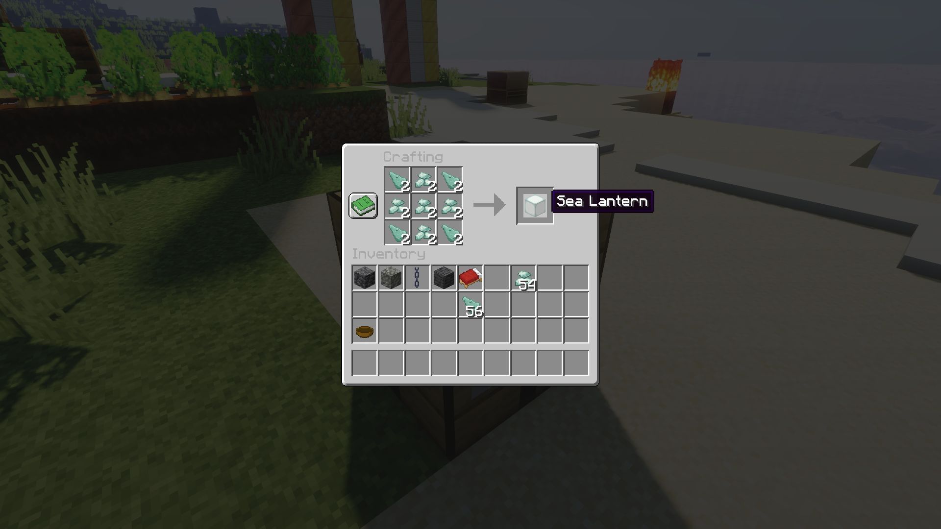 The most consistent, replicable, and convenient way to gain access to sea lanterns is through crafting them. The crafting recipe for sea lanterns is a combination of four prismarine shards and five prismarine crystals. The shards go in each corner, whereas the crystals form the center 'plus' of the crafting grid.