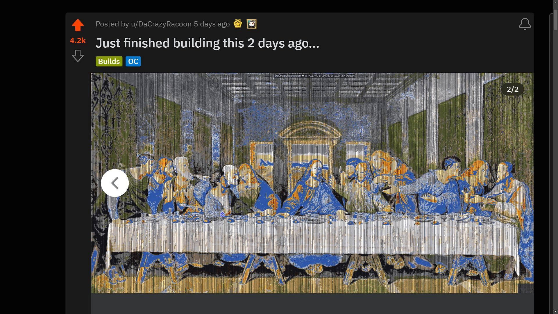 Posts where players showcase their massive creations in Minecraft always do well on the game's official subreddit. The one uploaded by u/DaCrazyRacoon received over four thousand upvotes and loads of comments in just a few days. People were blown away by how accurately the original poster replicated The Last Supper painting through map art.