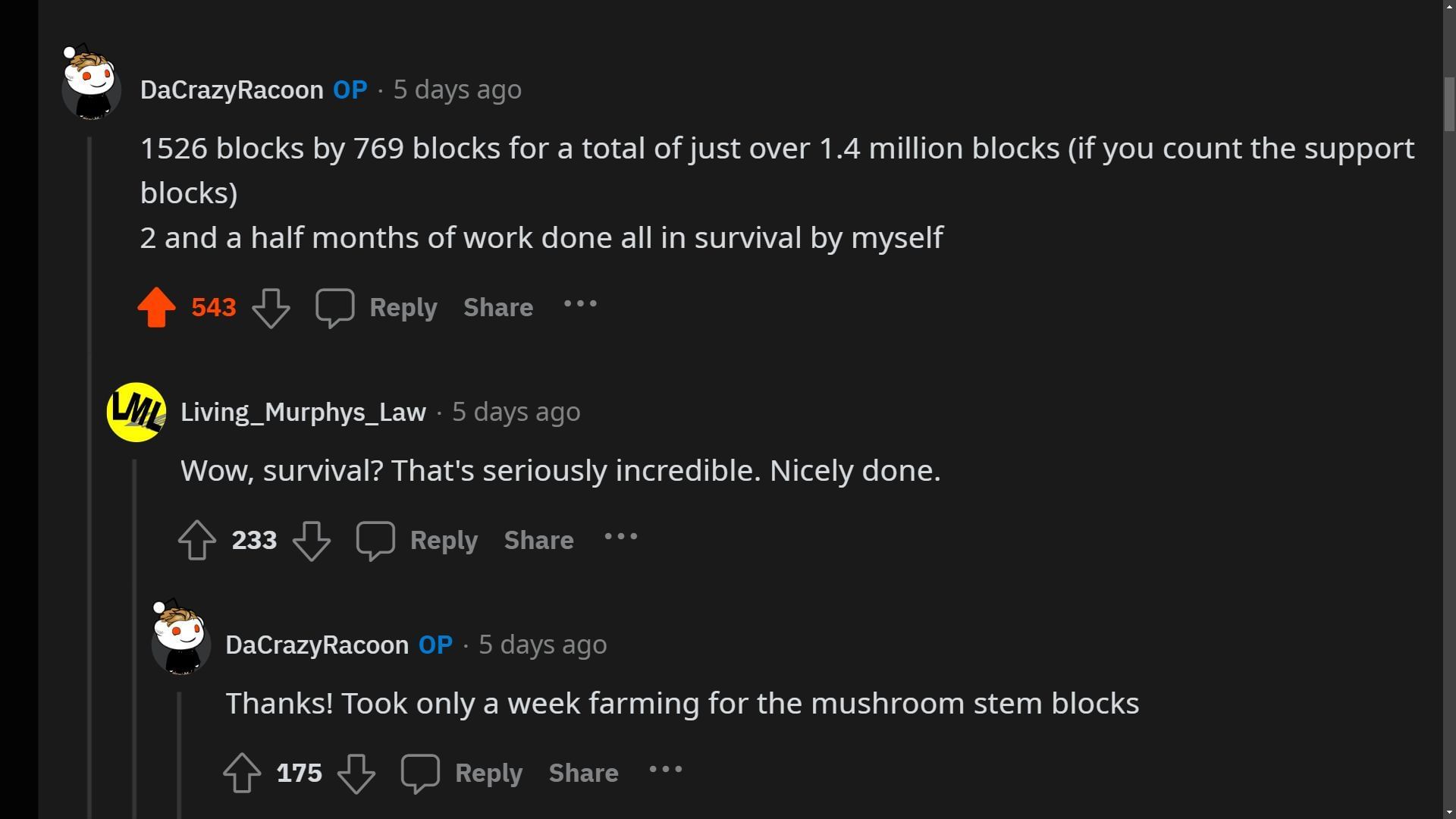 Overall, the post was highly appreciated by the Minecraft Reddit community since this is most definitely one of the largest map art that have been uploaded on the subreddit.