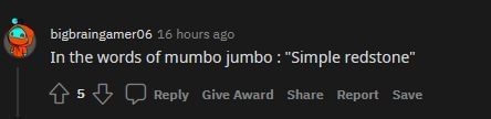 It is a running joke for popular Minecraft YouTuber MumboJumbo to claim that some of his builds are created with "simple redstone" when they are obviously very complicated and technical. This Redditor (like many) seems to be perplexed at the redstone in this post.