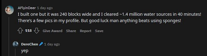 One Redditor was curious as to how the machine works. A sponge removes all water blocks within an area. This machine will run over the water blocks, removing them completely. A sponge-based contraption would be one-time-use, while this contraption is a long term investment.
