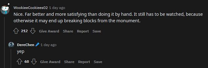 Players should be aware of the dangers of using this machine. If the machine is not handled properly, it will run into the monument and begin causing issues. This is why OP modified Ilmango's contraption to be smaller.