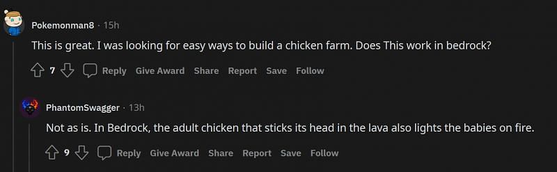 As seen above, the original poster (OP) created a quick and simple tutorial for a compact chicken farm. This tutorial-style is much more effective than a YouTube tutorial due to its sleek and easy-to-follow animation style.