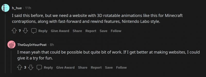 Due to the usefulness of this animated tutorial, it managed to gain a massive 9,000 upvotes in just a day. Many Minecraft Redditors said a lot about this post.