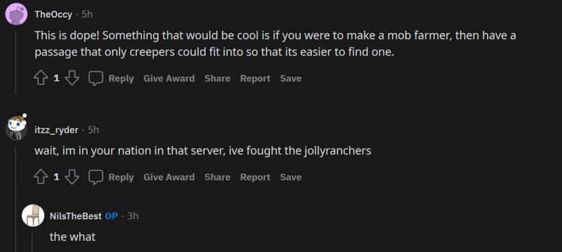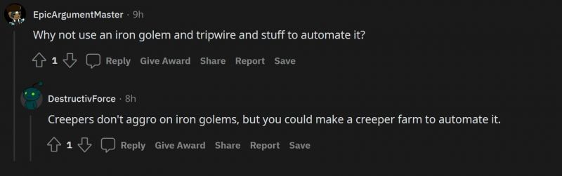 Due to the creative aspect of this post, it managed to gain a solid 911 upvotes in one day. A few Minecraft Redditors had interesting things to say about this awesome contraption.