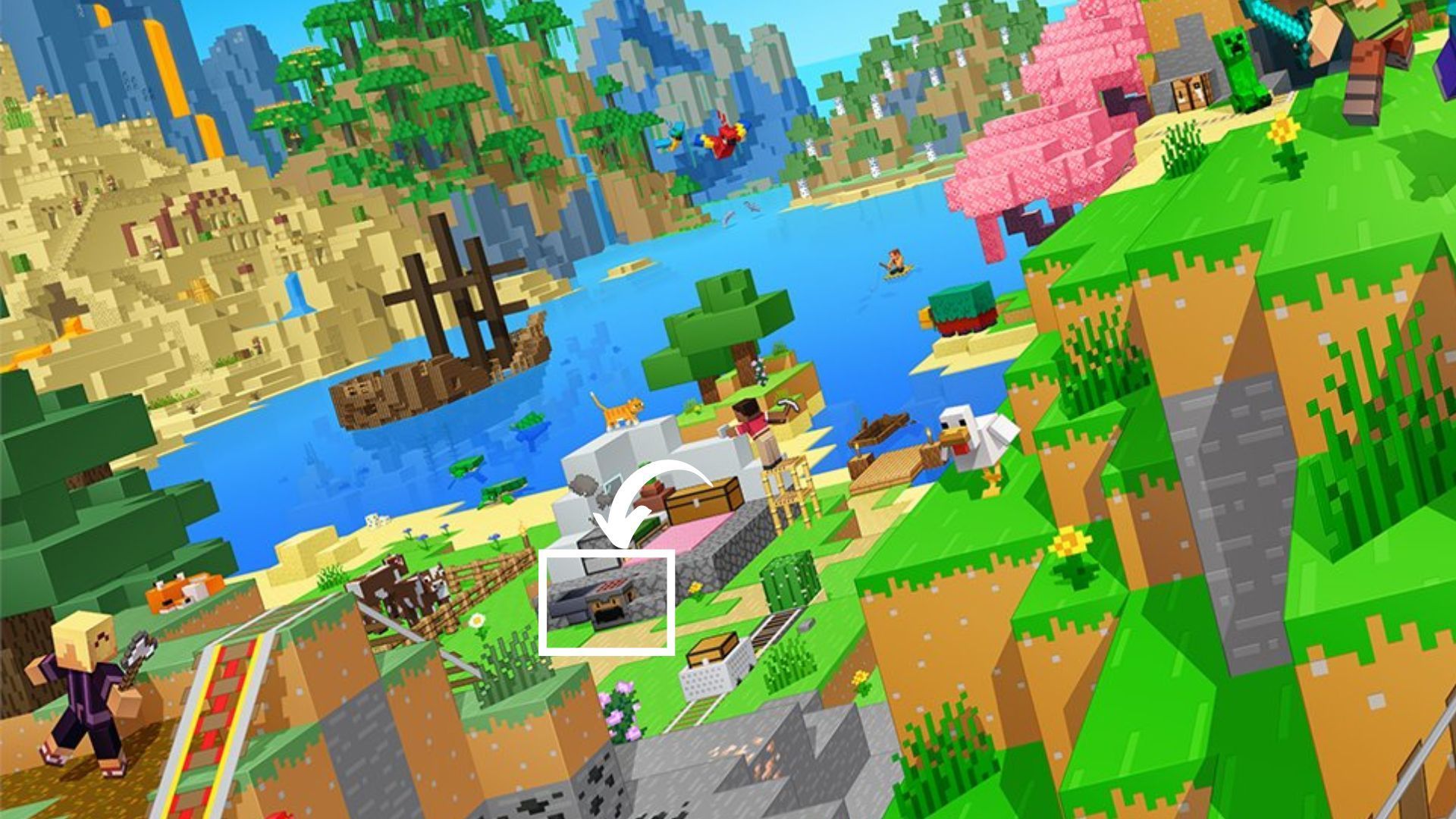 Keen-eyed fans of the game might have noticed that the artists have placed the crafter block on the left side of the new main image in the distance. The crafter block was added to the title in the Tricky Trials update. Another new addition from the latest patch shown in this picture is the wind charge.