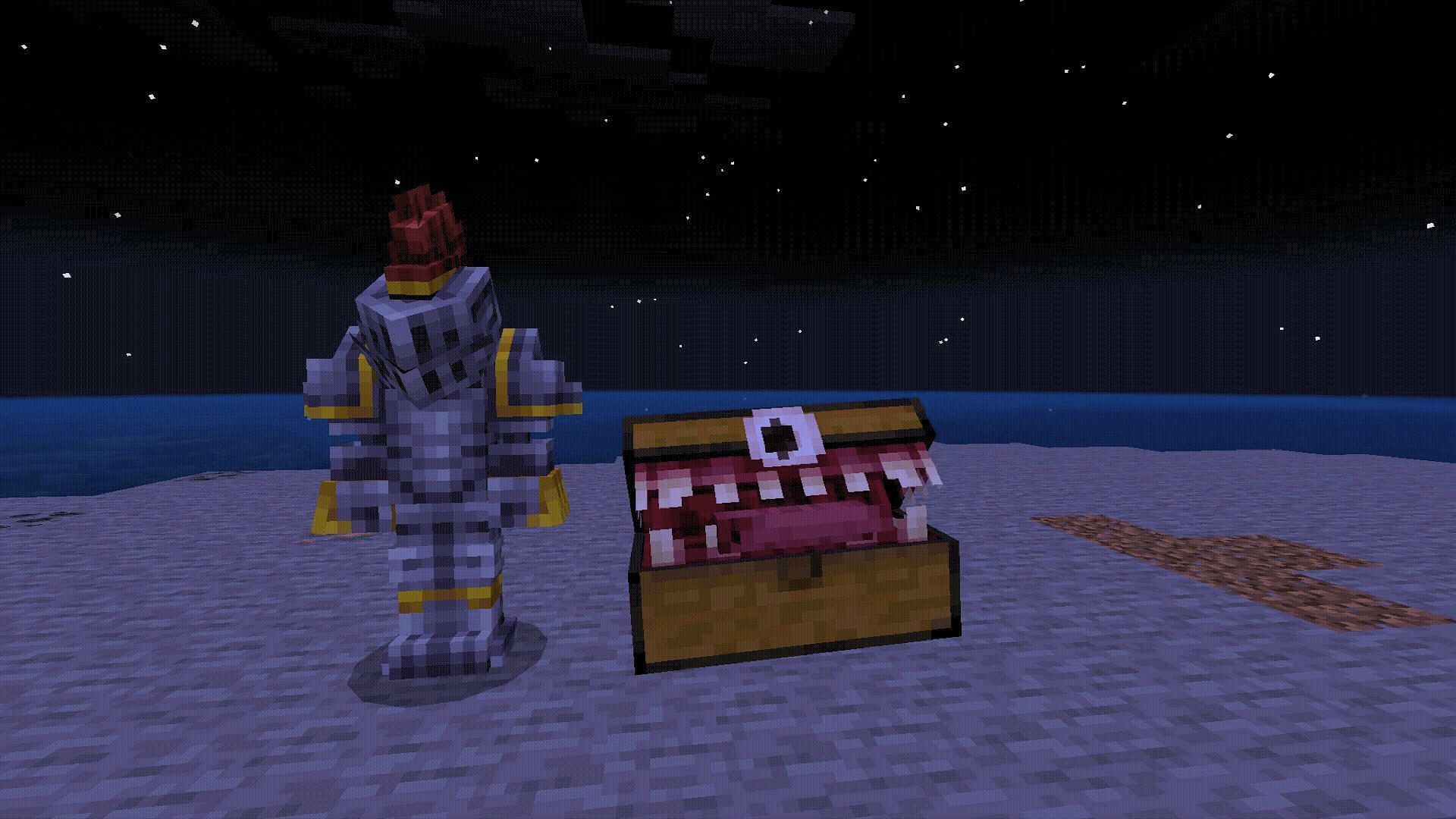 - Mimic chest: A chest that mimics living creatures and attacks when interacted with, dropping bones and a chest upon defeat.