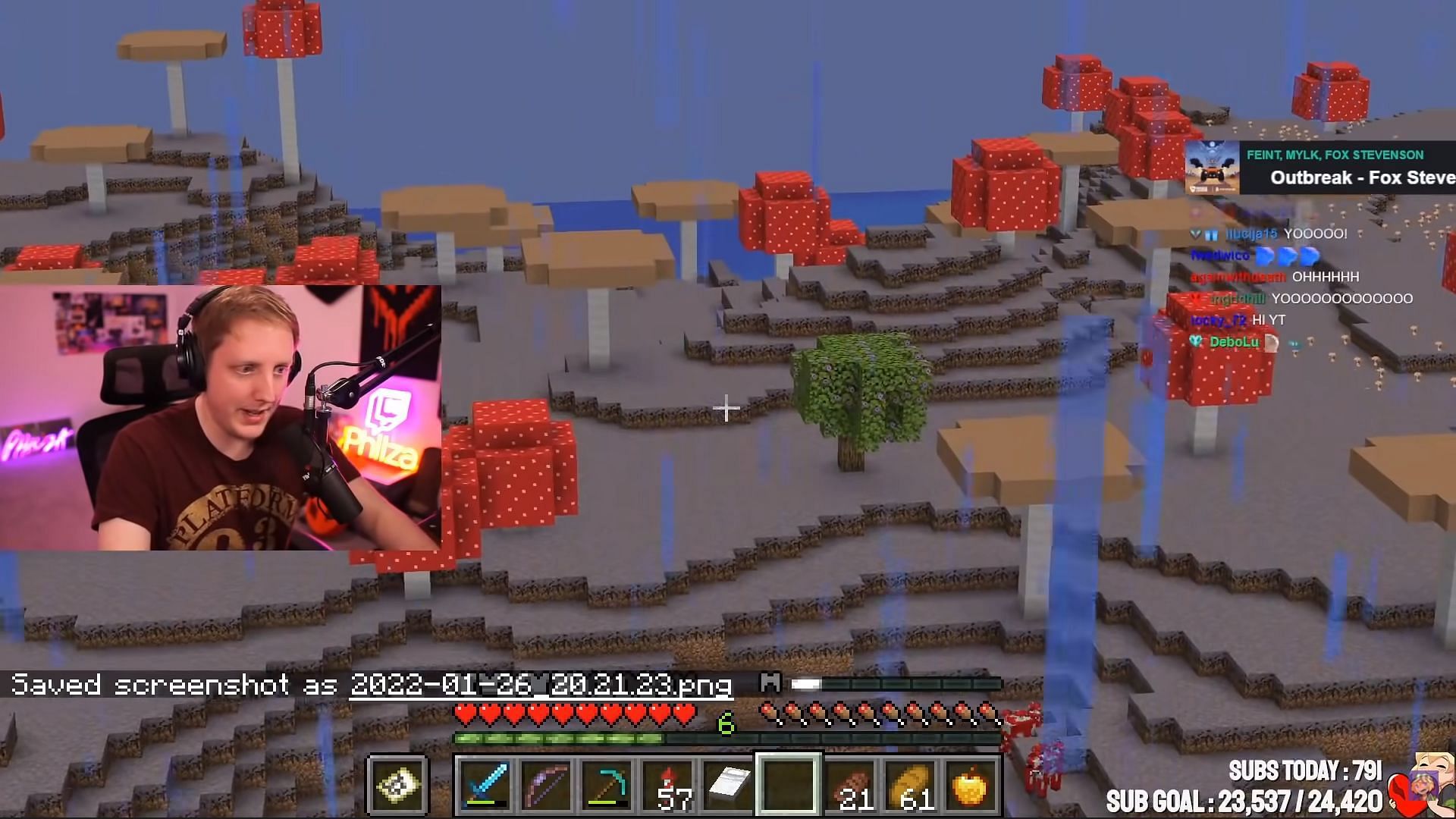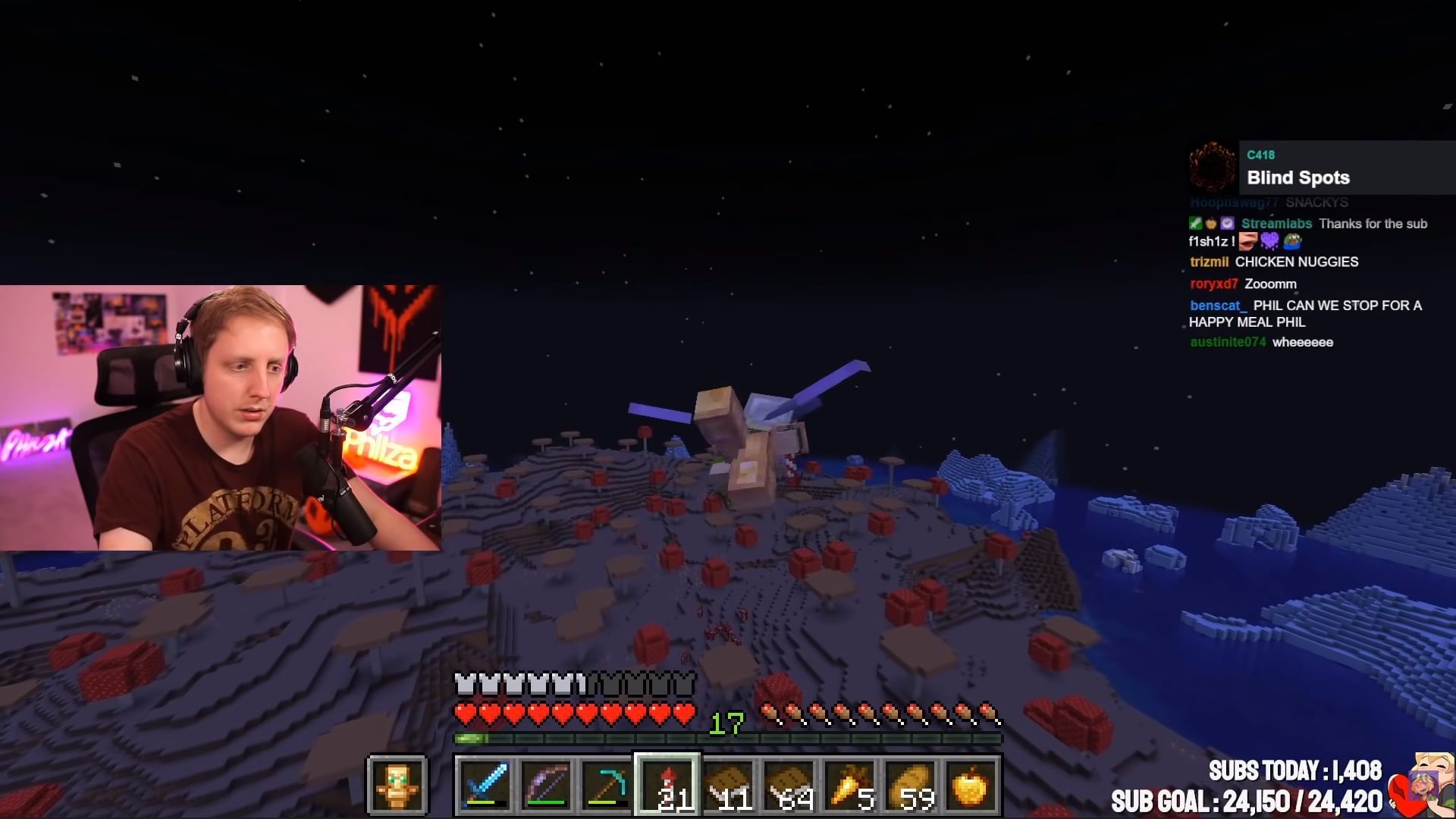 On his most recent stream, Ph1LzA was playing on Origins SMP as an Elytrian. He was trying to find a Woodland Mansion with the help of a map. He suddenly saw the rare mushroom island as he was flying over the ocean.