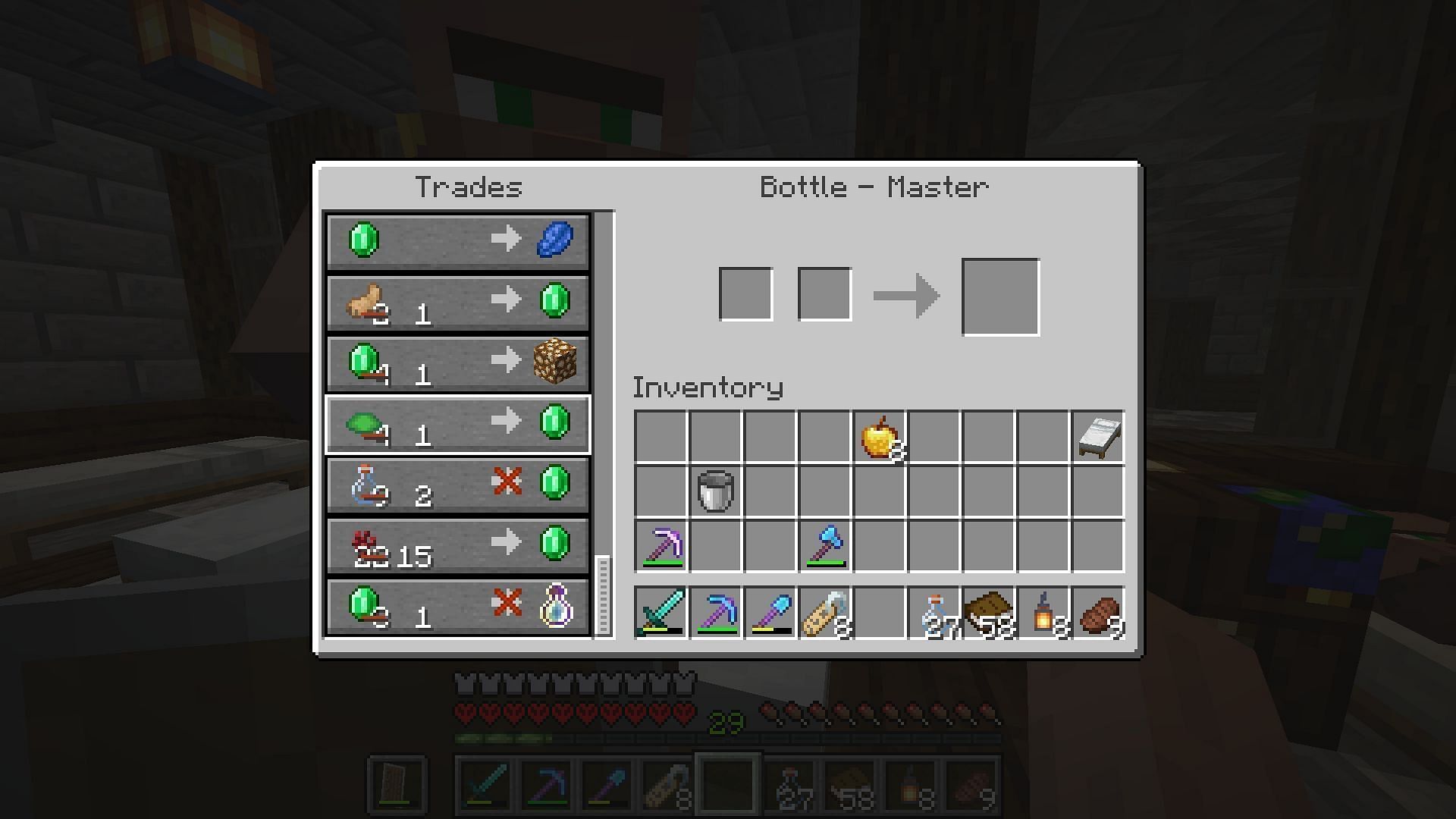 Engaging in trades with villagers can be rewarding to acquire rare and valuable items, including enchanted books, maps, and potions.