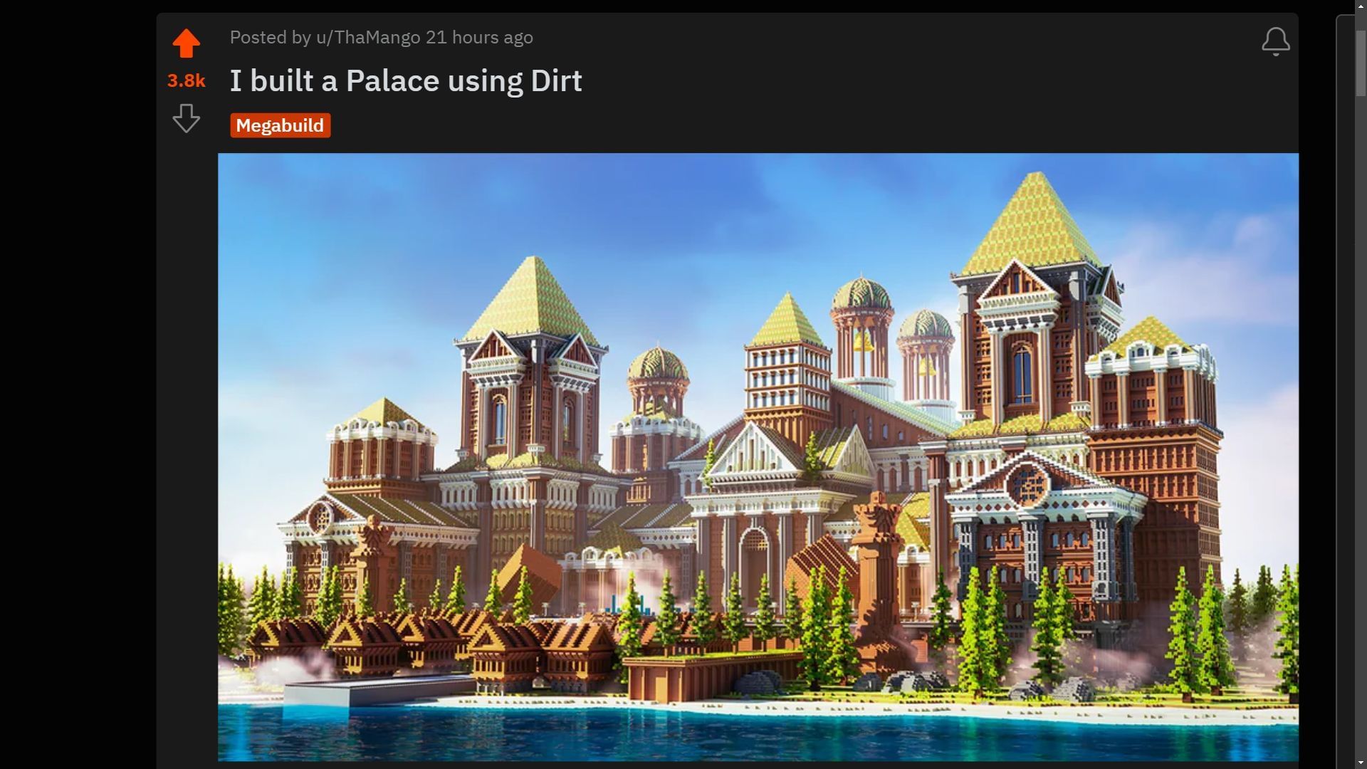 The dirt palace created by the original poster was so beautiful that it instantly caught a lot of attention on the Minecraft builds subreddit, where players post all kinds of structures they build. Within a day, the post received more than three thousand upvotes and several comments.