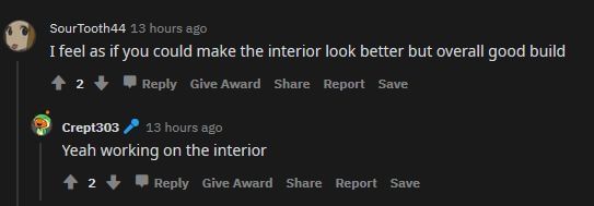 The OP received more criticism for the lack of features on the interior. However, he revealed that he was already planning on making some additions to it.