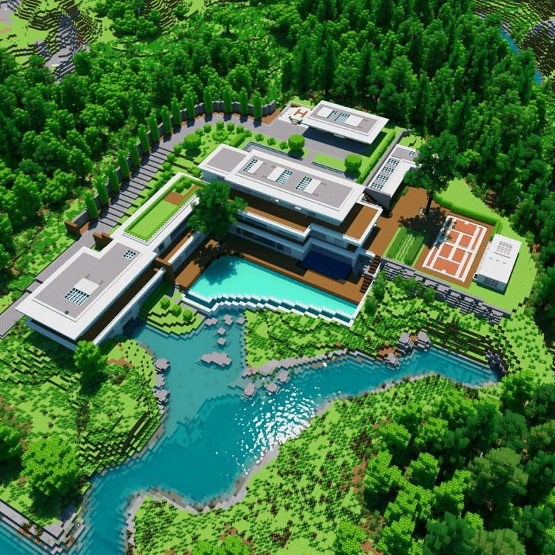 Built by u/Shapescape, this modern mansion can only be described as paradise.