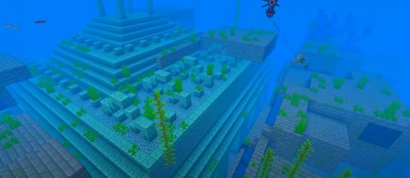 In this seed, there are numerous and repeating underwater ruins found on the surface. This is not only broken but could be incredibly useful for Minecraft players who are interested in getting their hands on a trident.