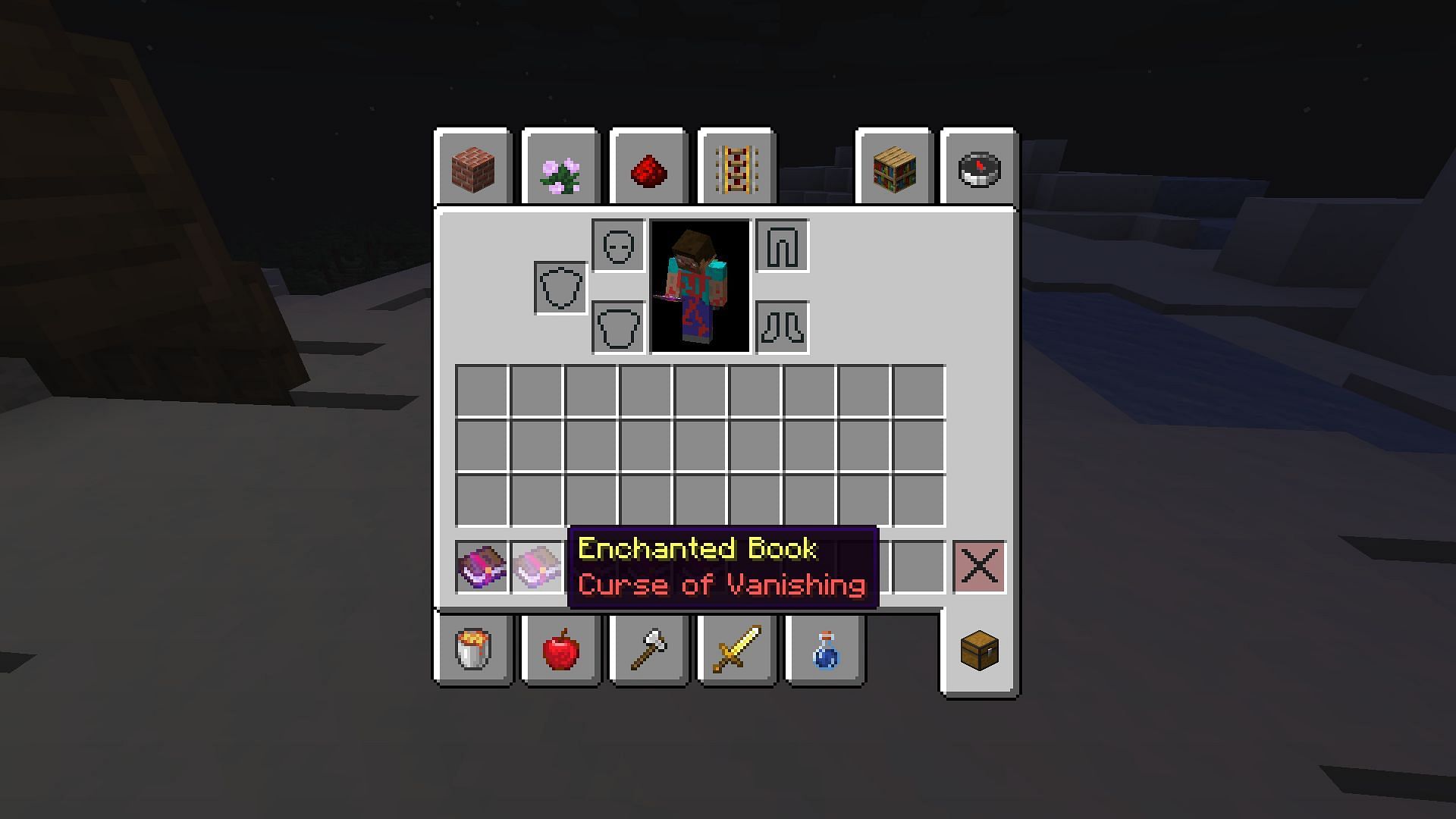 Curse of Vanishing is a straight-up negative-effect-offering enchantment. Whenever the power-up is applied to a tool, weapon, or armor, the item it's used on will vanish as soon as the player dies. Hence, the enchantment must be avoided at all costs since Minecrafters stand to lose equipment because of it.