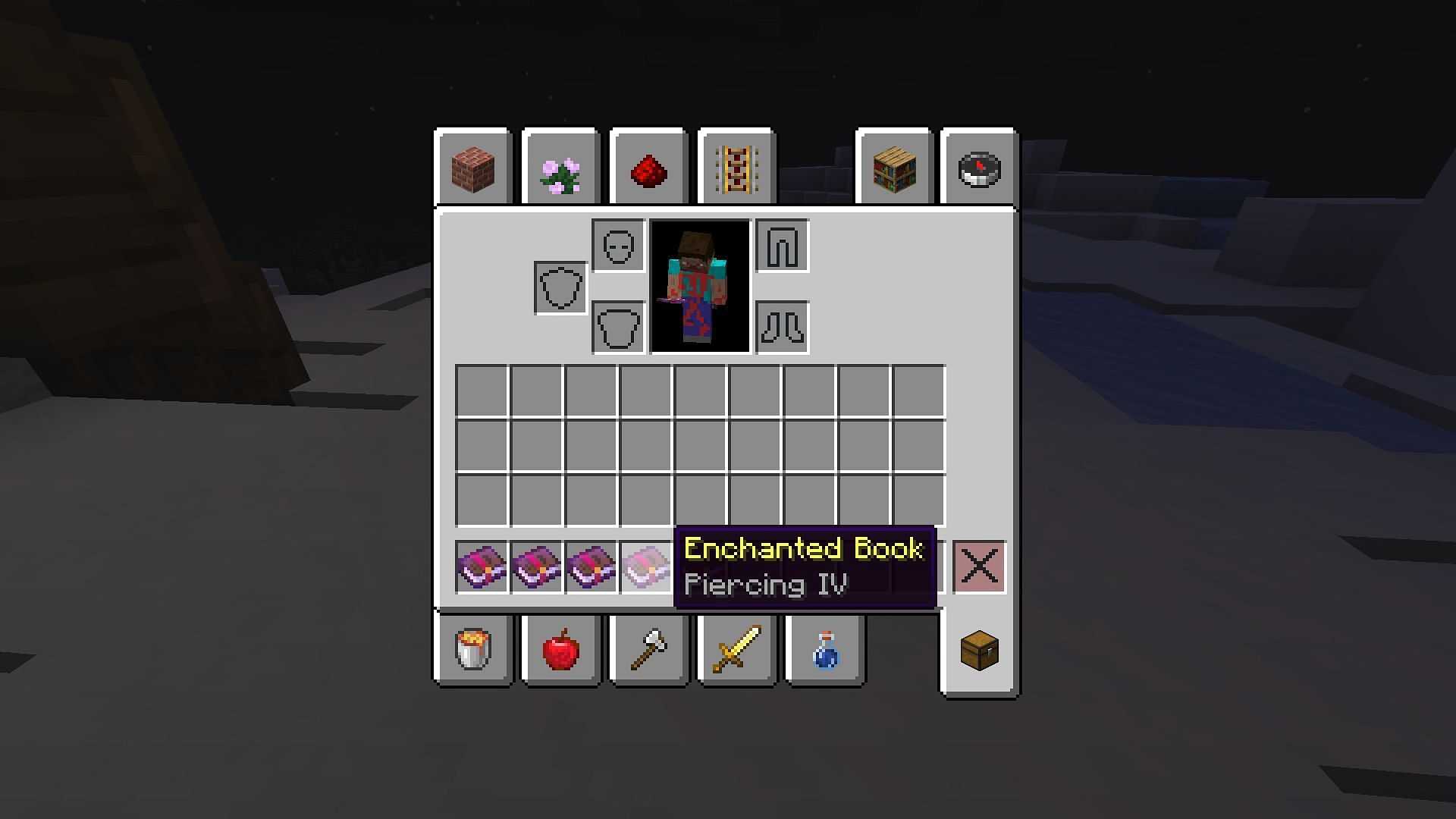 The previous curse enchantment can only vanish the item it's applied to, but this one can forcefully bind an armor piece onto a player. This is arguably the worst power-up in the game. If a player accidentally wears any armor with this enchantment, they will not be able to remove it till they die. It can make playing in hardcore worlds a nightmare because players will not respawn once they perish with the cursed armor part.