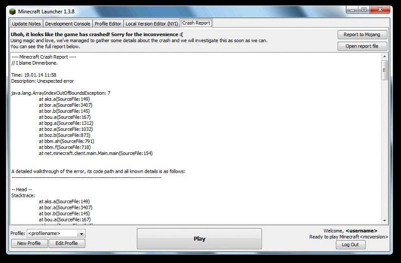 Minecraft is one of the most stable sandbox games that is available cross-platform. Even though it runs so smoothly on all devices, sometimes the game may crash. The developers have added many different amusing comments, like "I blame Dinnerbone", "Uh... Did I do that?" and "Who set up the TNT?", which appear at the top of the crash reports.