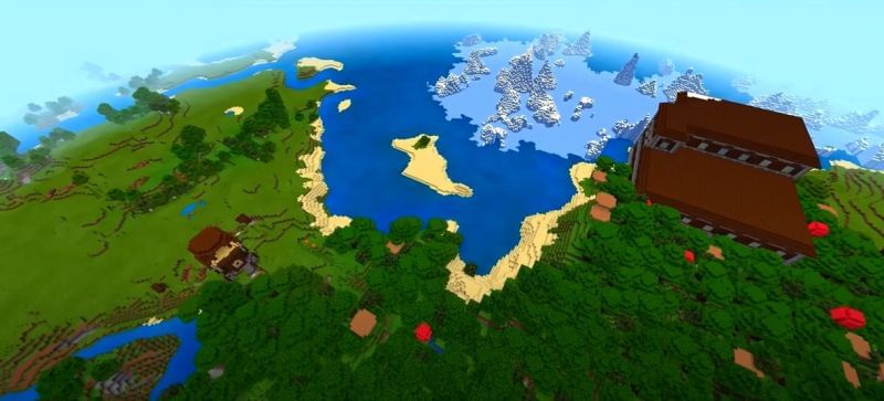 In this seed, Minecraft players will be able to find a woodland mansion nestled between trees, while also being close to the ocean. Players can defeat the foes inside and plunder all of the riches. Once they are done, this mansion is the perfect location to transform into a base. Alter the interior, make it larger, and decorate it as seen fit. Then the player has their very own beachfront Minecraft mansion