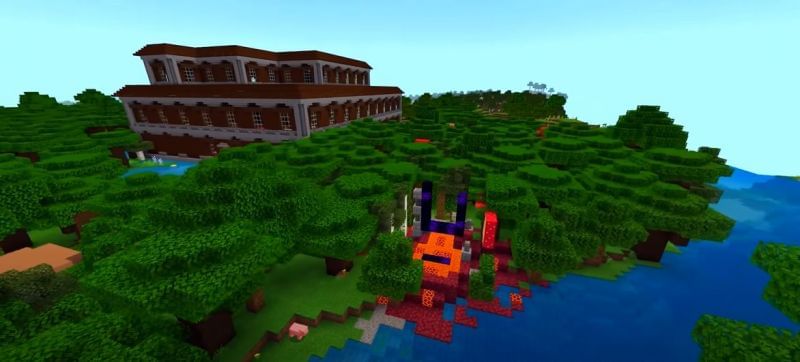 Typically, woodland mansions correlate with the location of nether fortresses. The player can take a peek inside the portal and see if that rings true. That makes this seed, almost a "one stop shop" for those looking to take on some of the best naturally spawning challenges in Minecraft.