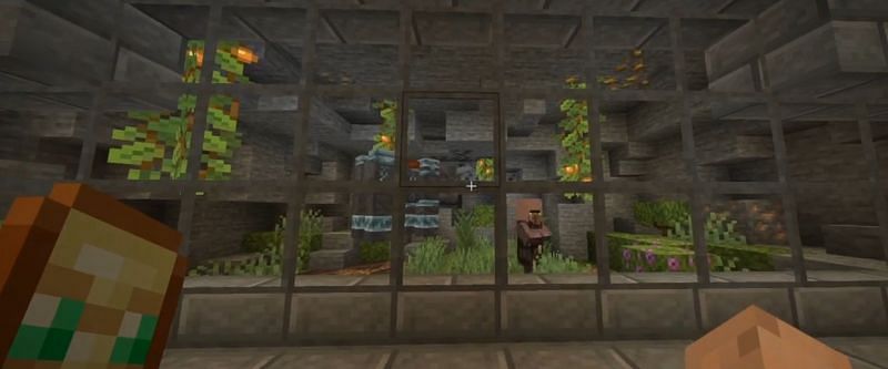 This trading hall is super impressive and holds dozens of villagers for their useful trades. The villagers with non-desirable trades are placed into a hole before being sent to a cage. This cage contains a ravager, which instantly attacks the villagers upon their arrival.