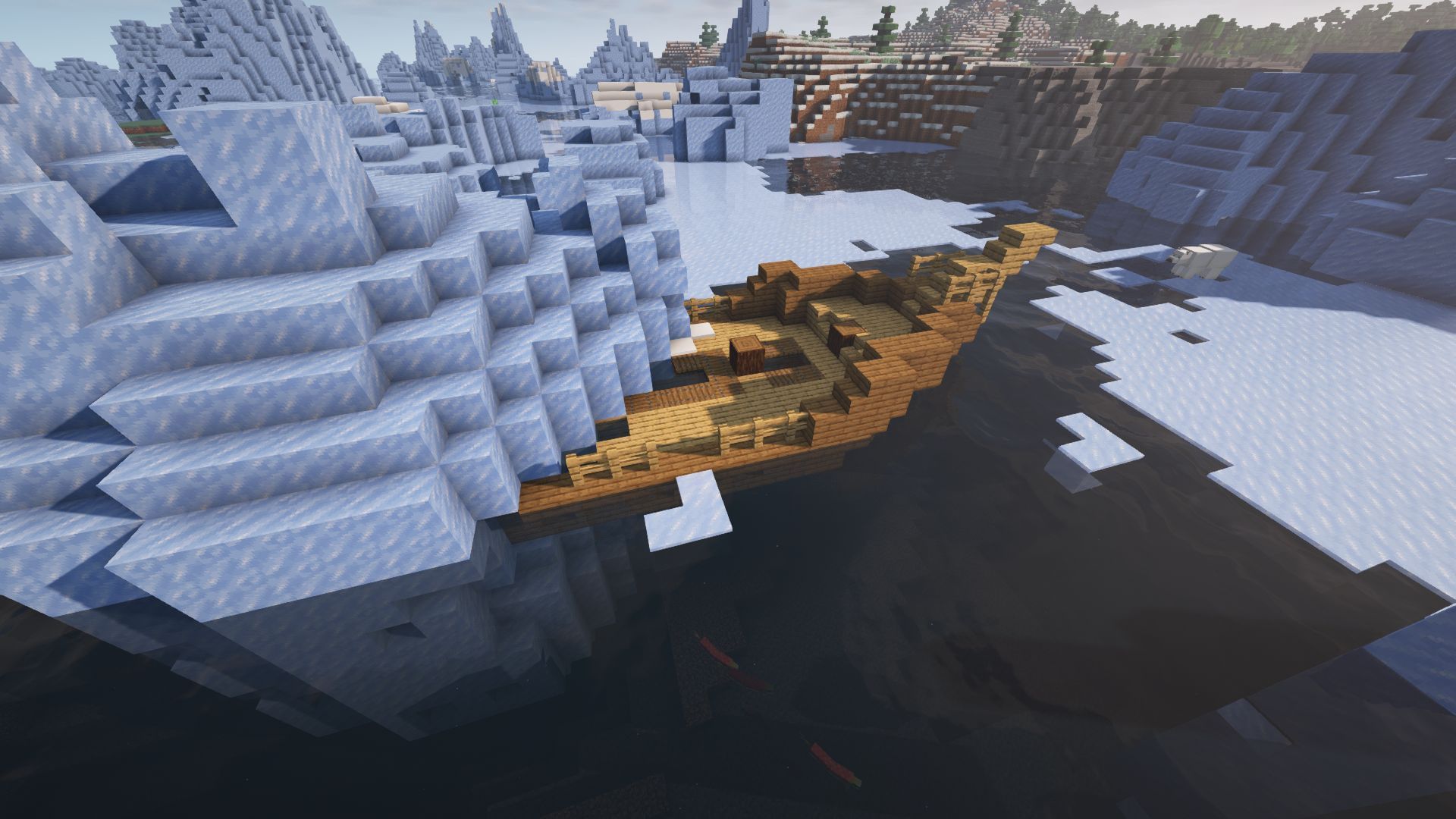 Shipwrecks are small and randomly generated underwater structures that can have two or three chests, with one of them having loads of precious loot. One of the chests in the structure also has a map to a buried treasure chest.