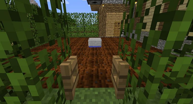To prevent this from happening, players can place slabs over the water so that the water is covered. The slab will allow players to walk over it without stomping the crops in the process.