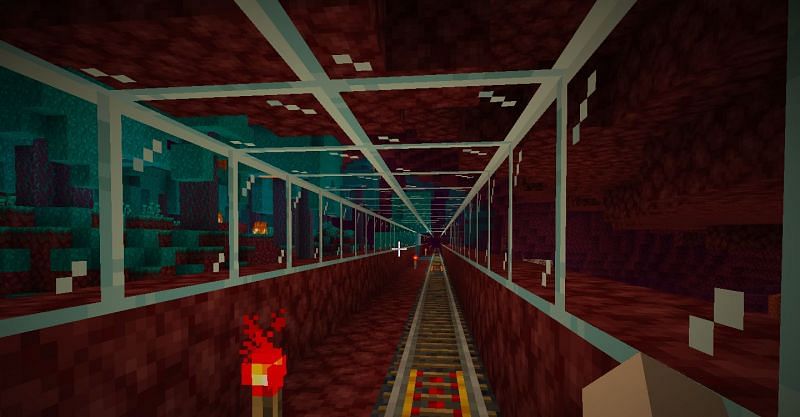 The tunnels do not have to be made out of the same blocks. For cool views during the nether commute, use glass blocks to build the tunnels. This can be utilized in areas in which players have to manually build connections between each portal in the nether instead of digging their way through.